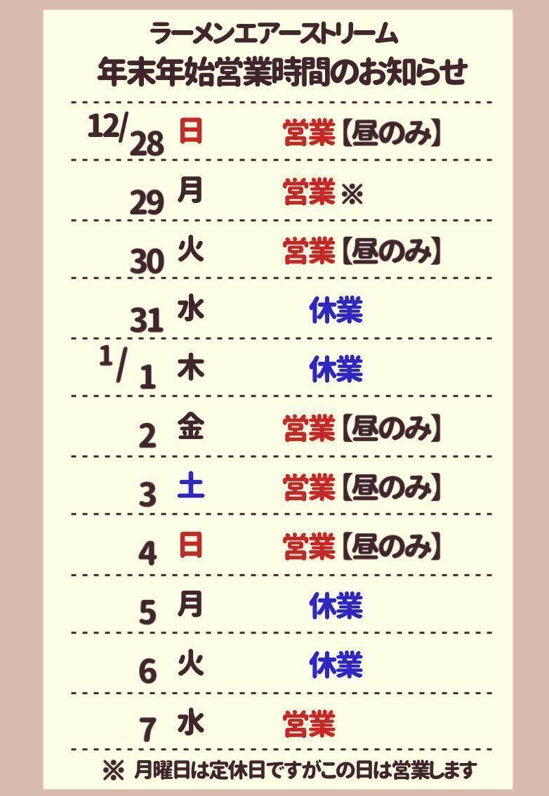 12/28(日)🔴昼営業のみ